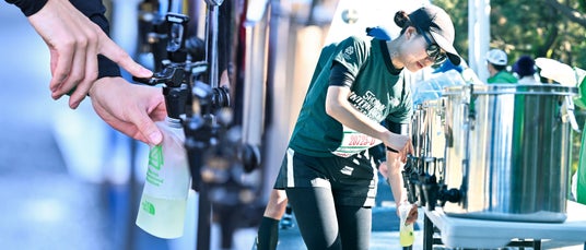 ランナーが自身のマイボトル・マイカップを携行し、約200か所に設置された給水ポイントで補給を行う独自の仕組みを構築。従来のマラソン大会で大量に発生していた使い捨てゴミを、根本から削減する大会運営を行っています。