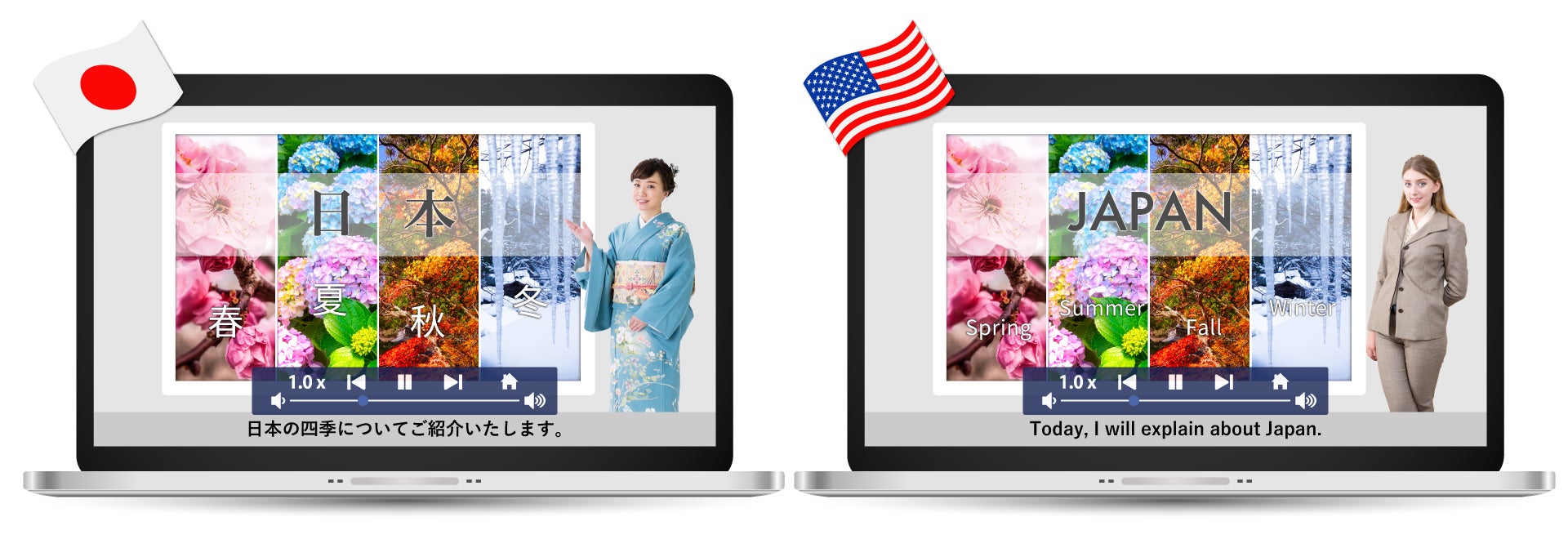 紙の資料(PowerPoint)をアップロードするだけで、簡単に動画を作成できるサービスです。高精度のナレーション付き動画を誰でも簡単に作成できるので、従来の動画制作(撮影・録音)にかかっていた、スタジオ・機材費用、時間や労力、ナレーターの人件費といったコストが一切なくなります。