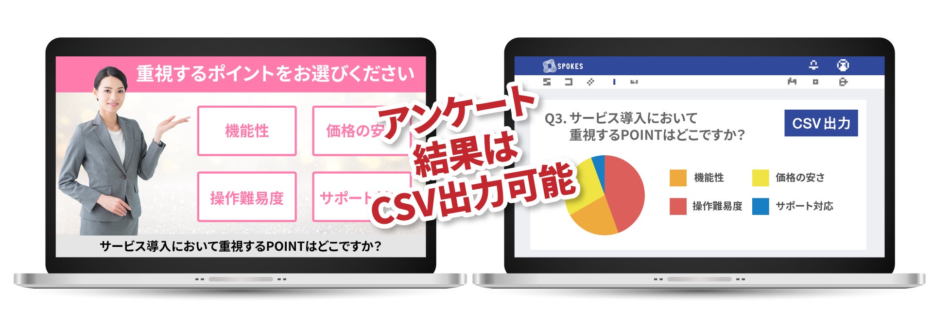 取得したアンケート結果はCSV出力も可能です。動画から取得した定量的なデータを事業にご活用いただけます。