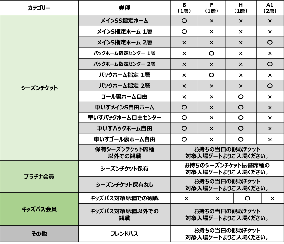 ・1~3層のホームゴール裏自由席をお持ちの方はチケット記載のゲートではなくHゲートにてシート貼りを行います。