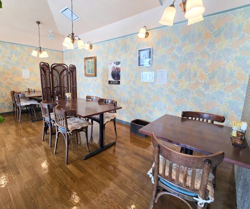 各テーブルにゆとりがあり、ゆったりと食事を楽しめる空間が広がっています。