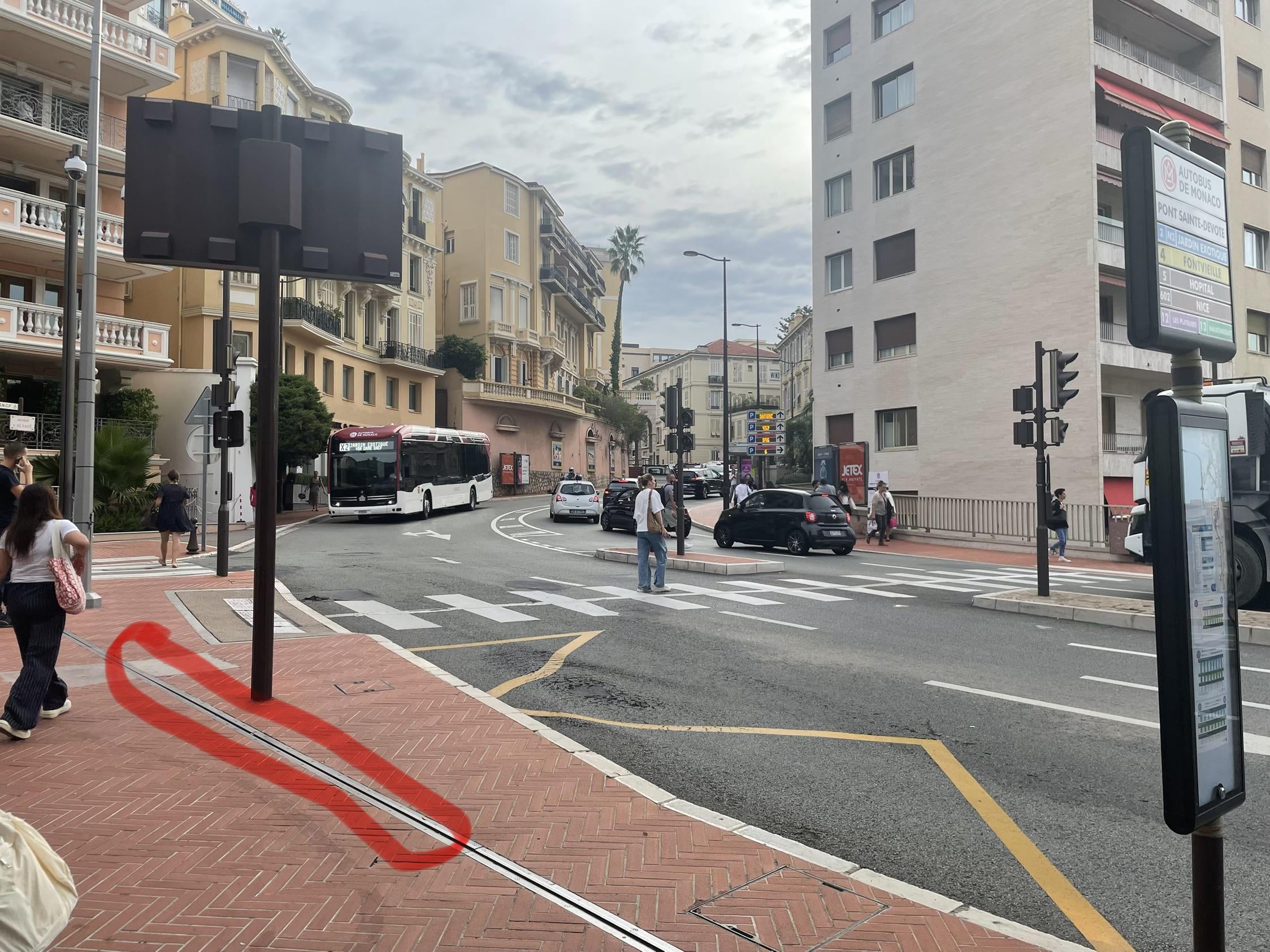 駅の上部出口のバス停沿いにフレキシブルジョイントがあります。橋で時々見かけるものと似ていますが、ここには当然橋はありません。ご想像のとおり、この接合部の終点のアスファルトには醜い亀裂があります。 近くの建設現場と、数年前に全運転を停止しなければならなくなるほど駅のエレベーターに影響を与えていたことと関係があるのだろうか…。 Monaco