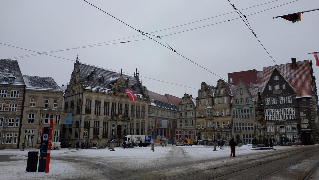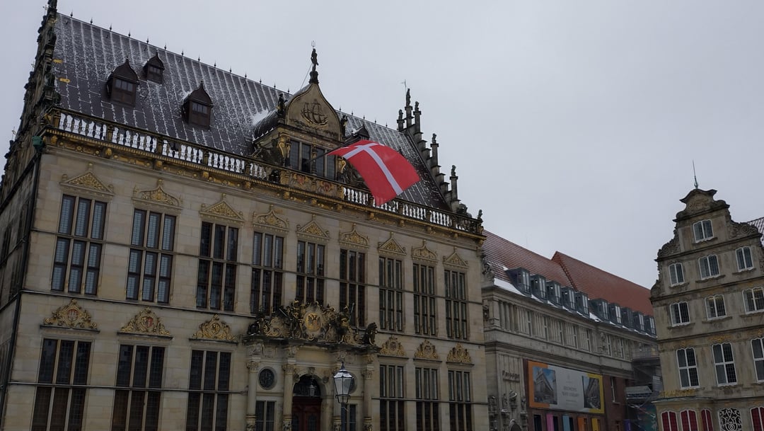 最初の写真: シュッティング – 商人および商人のギルドハウス 2 番目の写真: シュッティングを含む市場全体 3枚目の写真: 市、国の旗(風で巻き上げられている)、そして再びダンネブログ(風で部分的に巻き上げられている…)が掲げられたひどい角度の市庁舎 Denmark