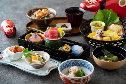 日本料理「平川」旬の食材を活かした福島県産の食材や郷土料理を、平川らしいアレンジでご提供いたします。目にも鮮やかな盛り付けとともに、初夏の味覚を存分にご堪能ください。
