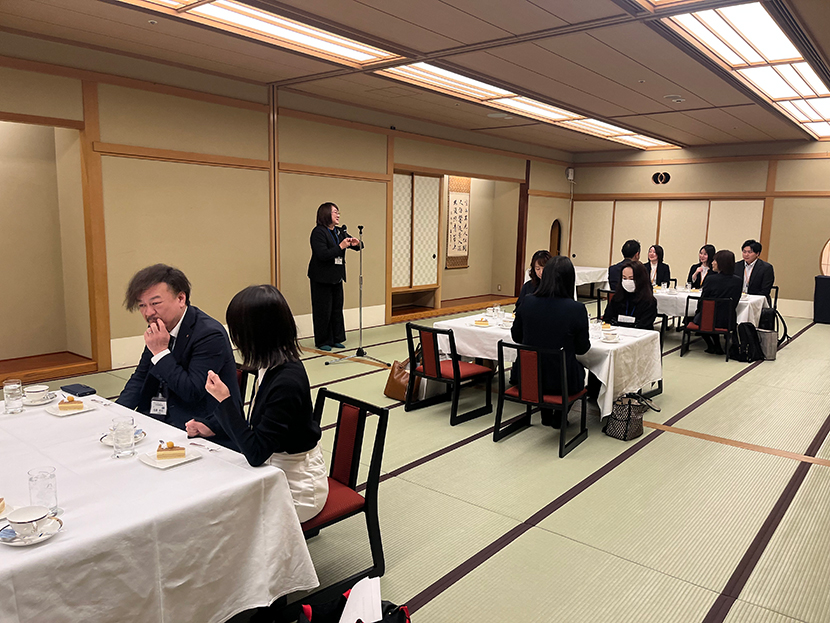 就職懇談会が終了後、茶話会を催し、ケーキを食べながらコーヒーを飲んで参加者同士、交流を深めました。