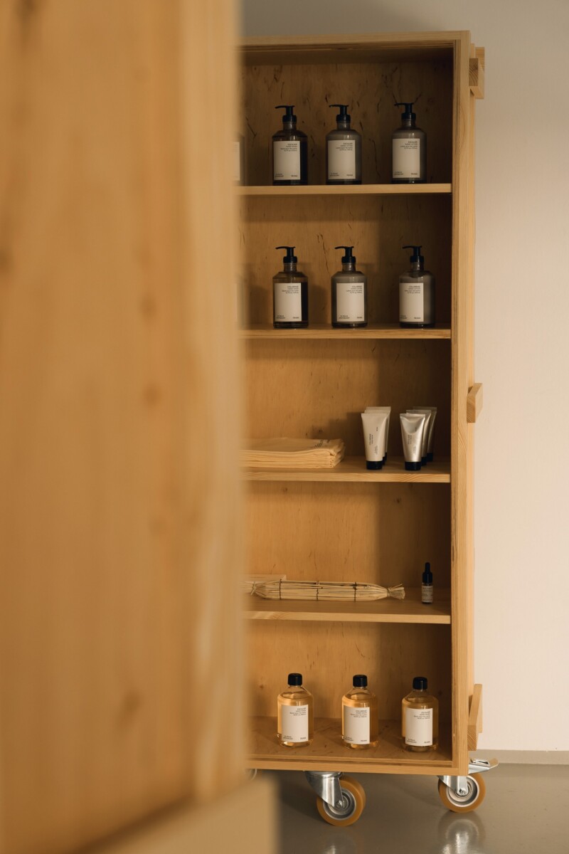 展示は、FRAMA の家具、ライフスタイルオブジェクト、セルフケアアイテム、フレグランスなど多岐にわたるプロダクトラインを、インスタレーション形式でギャラリー空間全体を通して体験できる構成に。