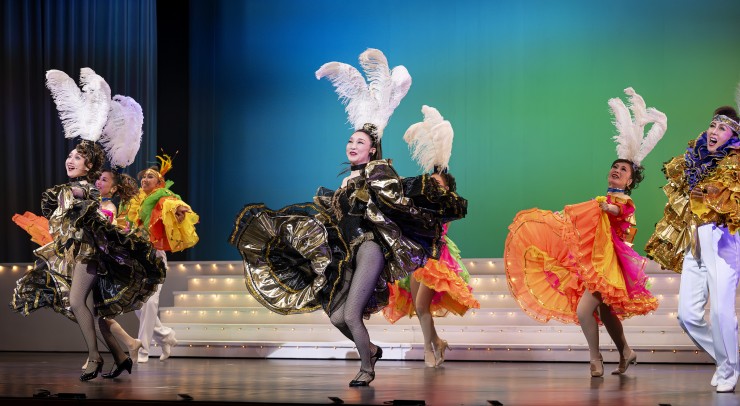 後半の洋舞レビューは踊りのOSKの魅力が炸裂。充実の主題歌メドレー、たっぷり見せるスパニッシュなどに加え、娘役5人のユニット「チェリーガールズ」の景もある。