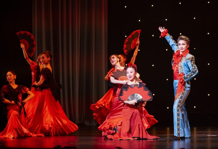 スカートが美しく回る、情熱のラテン。若木志帆(中央の娘役)と舞美りら(左端)