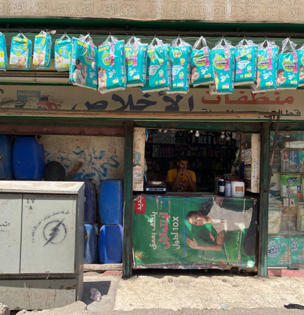 エジプトでは一般人は普段、近代的スーパーマーケットよりも、小規模店舗、スーク(青空市場)などで買い物をする。小規模店舗では、まとまったパッケージでの販売のほか、少額でも買えるように、ばら売り(1個ずつ)の販売も行う。