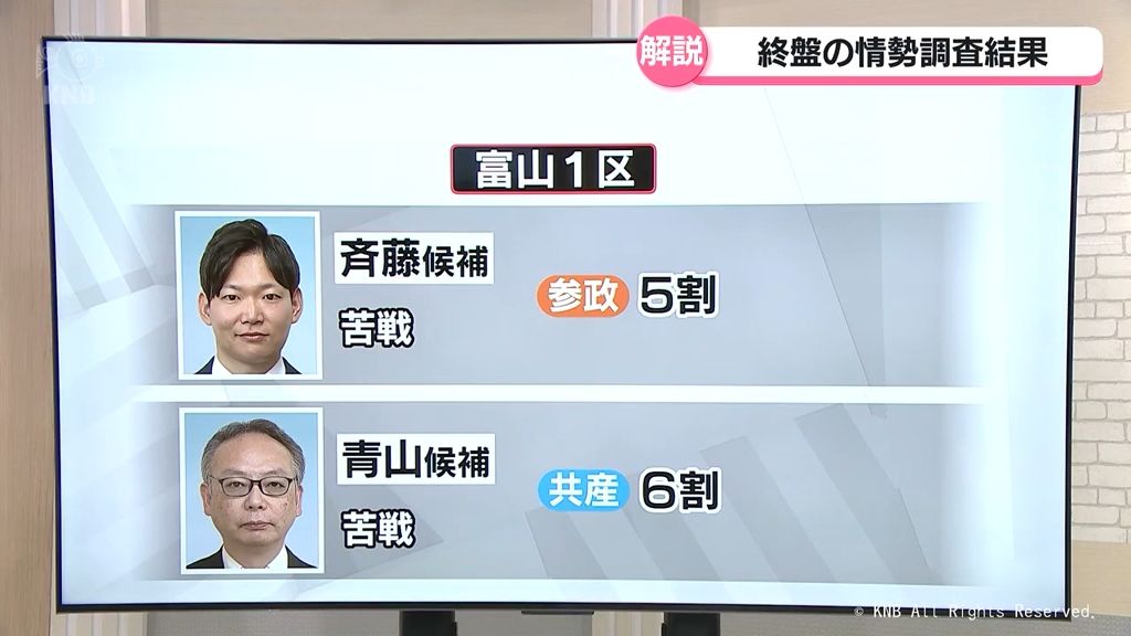 参政党・新人の斉藤匠候補と共産党・新人の青山了介候補は苦戦を強いられています。