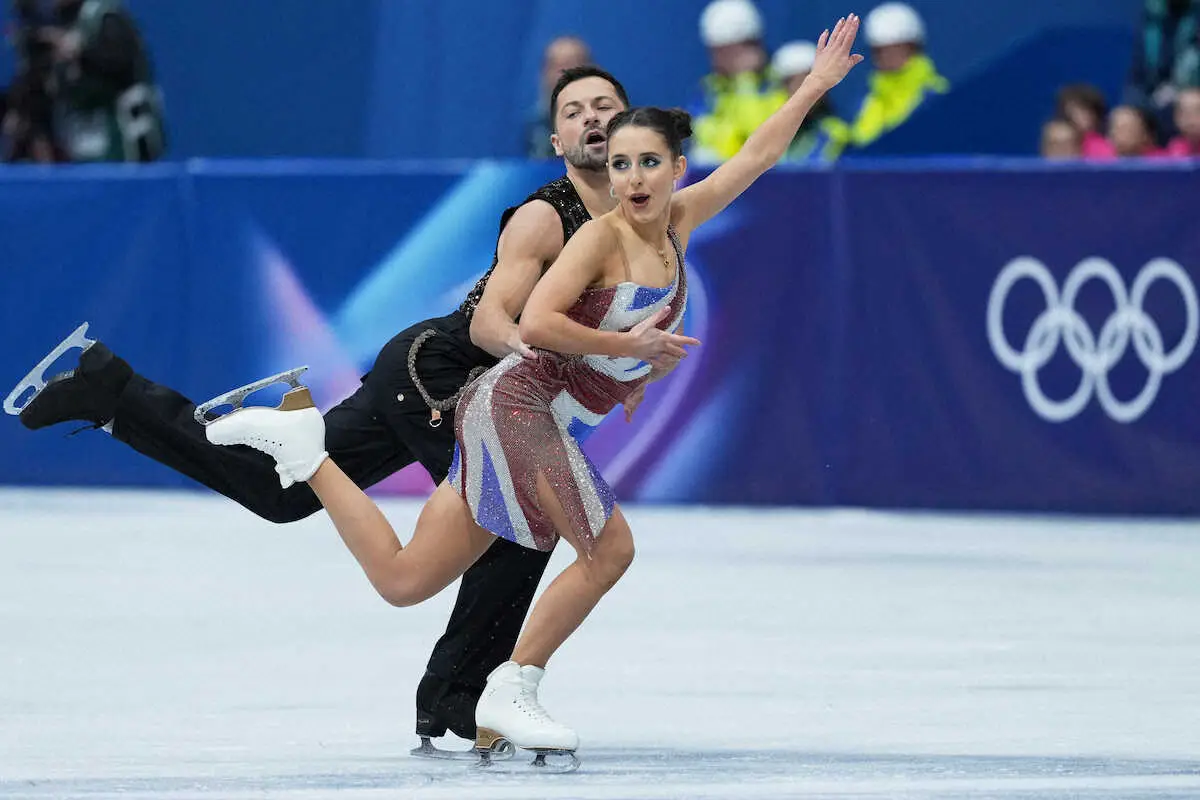 フィギュアスケート団体で、アイスダンスに登場した英国のライラ・フィアー(右)、ルイス・ギブソン組 (AP)