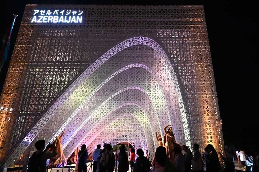 夜のアゼルバイジャン・パビリオン(6月5日/大阪・関西万博 撮影:Lmaga.jp編集部)