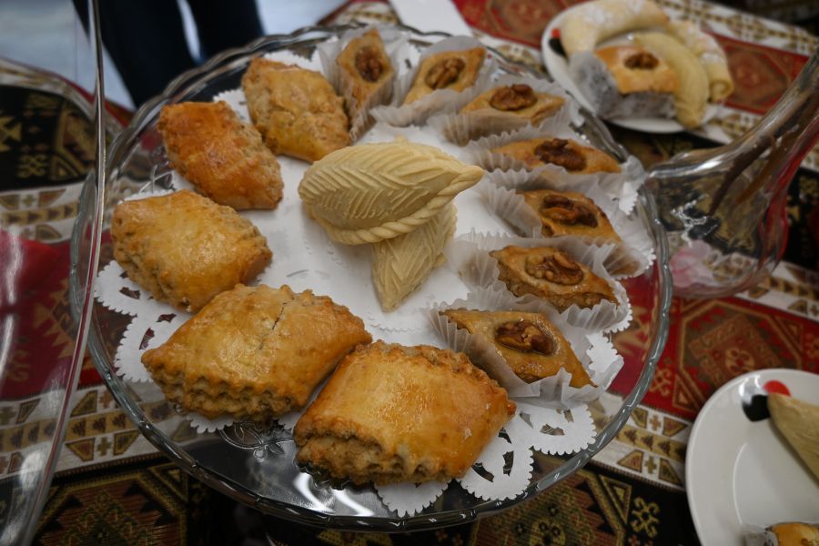 筆者が「アゼルバイジャン・パビリオン」を取材した際には、「2階のカフェで提供予定の現地のスイーツがなかなか届かない…」とのことで、パビリオンのカフェで提供していたメニューは日本のスイーツのままで、とうとう万博は閉幕してしまった。しかし、ようやく大阪でアゼルバイジャンの伝統的なケーキ「ムタキ」(350円)や「バフラヴァ」(500円)などの現地の味を大阪で楽しめるようになった形だ。