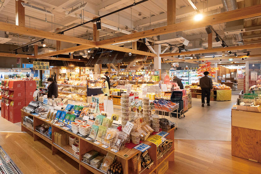 地元の新鮮野菜や特産品に加え、県内外の生産者のストーリーが詰まった選りすぐりの食品が並ぶ。