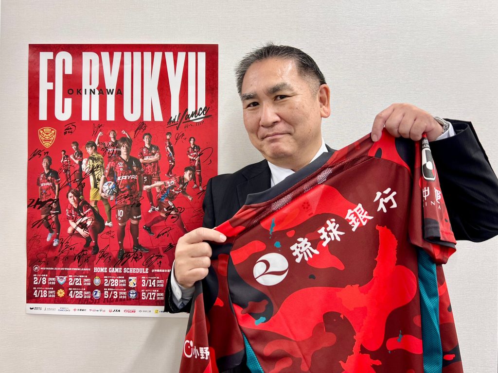 「新シーズンの開幕、誠におめでとうございます。琉球銀行は今シーズンもユニフォームパートナーとして、FC琉球の皆さまとともに戦えることを大変誇りに思っております。ピッチを駆け抜ける選手の皆さまの背中に、当行のロゴを掲げていただけることは、私たちにとって大きな喜びであり、日々の励みとなっております。どのような状況にあっても決して諦めず、勝利を信じて前へ進むチームの姿は、沖縄県民に勇気と感動を与えてくれます。J2復帰、そしてその先のさらなる高みを目指し、サポーターの皆様とともに、全力で応援してまいります。チバリヨー、FC琉球!」