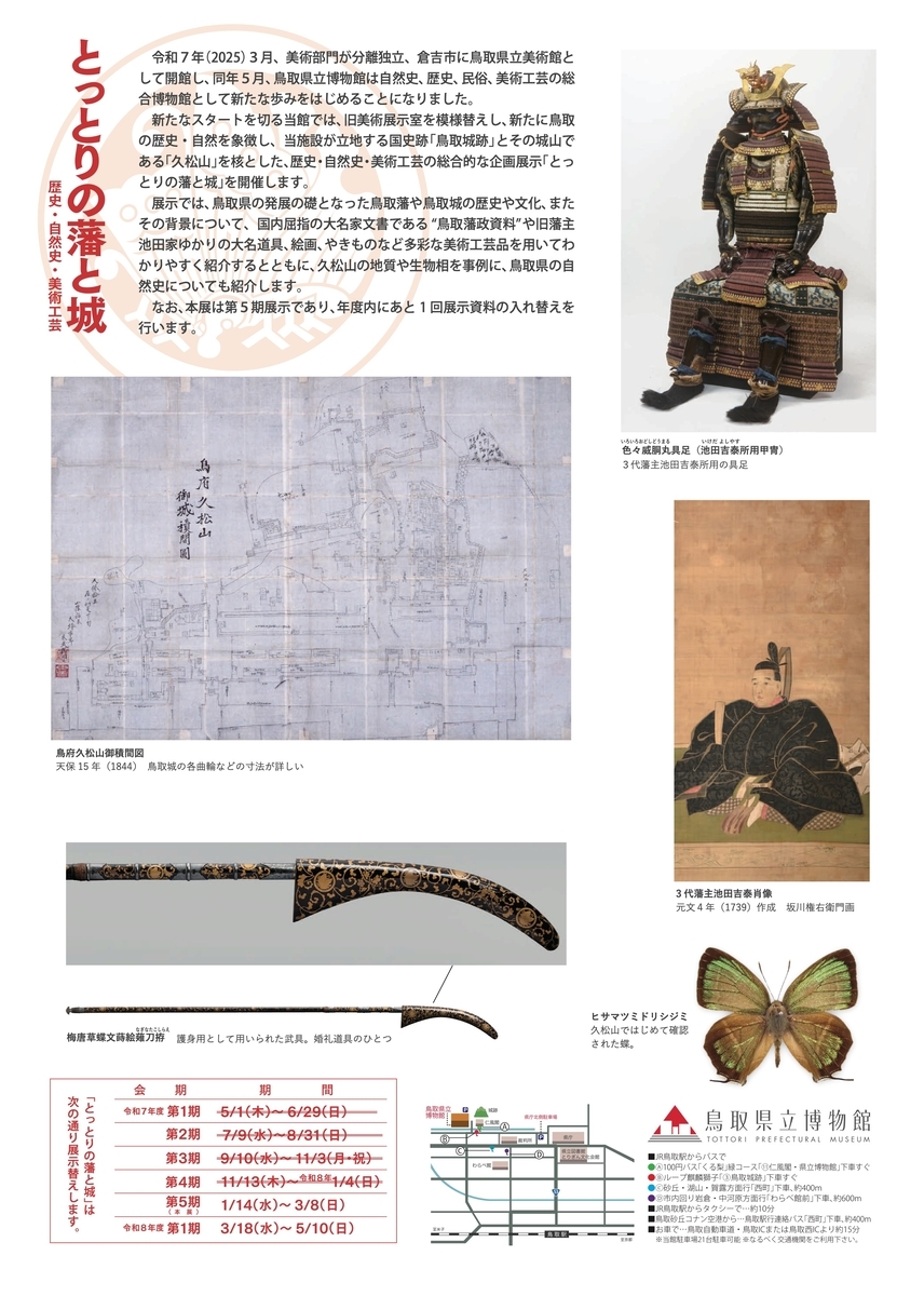 現在、鳥取県立博物館(鳥取県鳥取市)において通常展 第5期 「とっとりの藩と城」が開催中です。3月8日(日)まで。