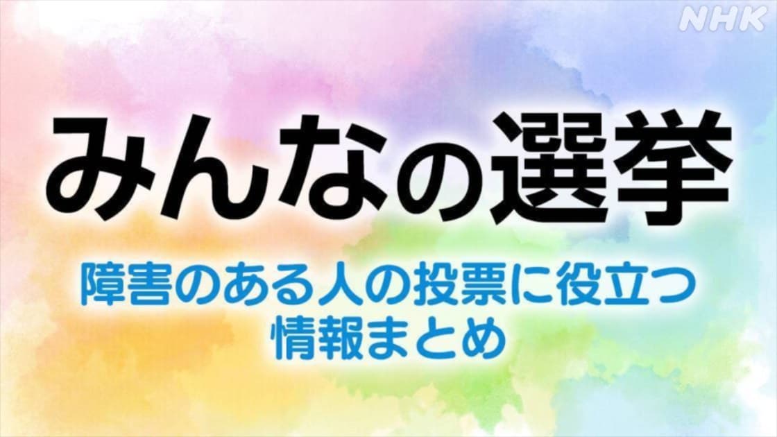 障害があって投票に行けなかった人や行きづらかった人、障害のある人をサポートする人たちに役立つ、選挙の情報を掲載しています。