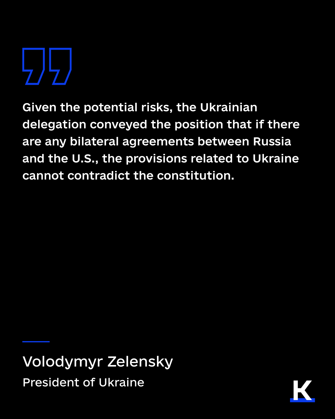 "潜在的なリスクを考慮して、ウクライナ代表団は、ロシアと米国の間に何らかの二国間協定があれば、ウクライナ関連の条項は憲法に矛盾してはならないとの立場を伝えた。" と述べ、領土問題に言及したようだ。