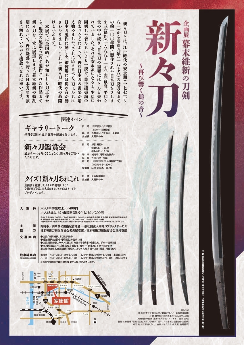 現在、三河武士のやかた家康館(愛知県岡崎市)において企画展「幕末維新の刀剣 新々刀 ~再び響く槌の音~」が開催中です。4月12日(日)まで。