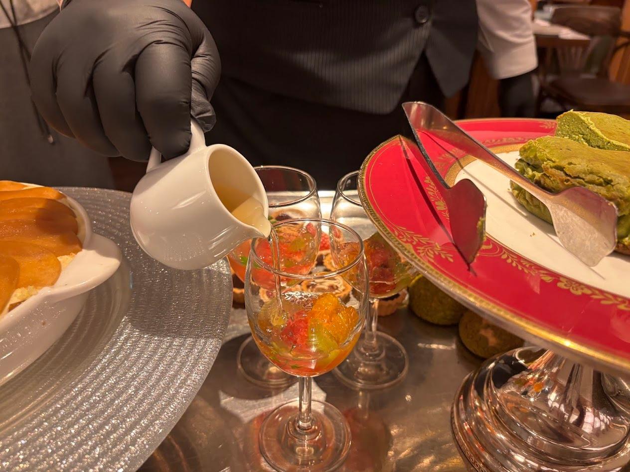 かつて19世紀のヨーロッパでは、上流階級の人々が午後のティータイムに集い、美しいデザートとともに語らう習慣が育まれました。その優雅なティータイム文化を京都駅前で気軽に楽しめるワゴンデザートスタイルで提供してくれるというその心意気が良い。