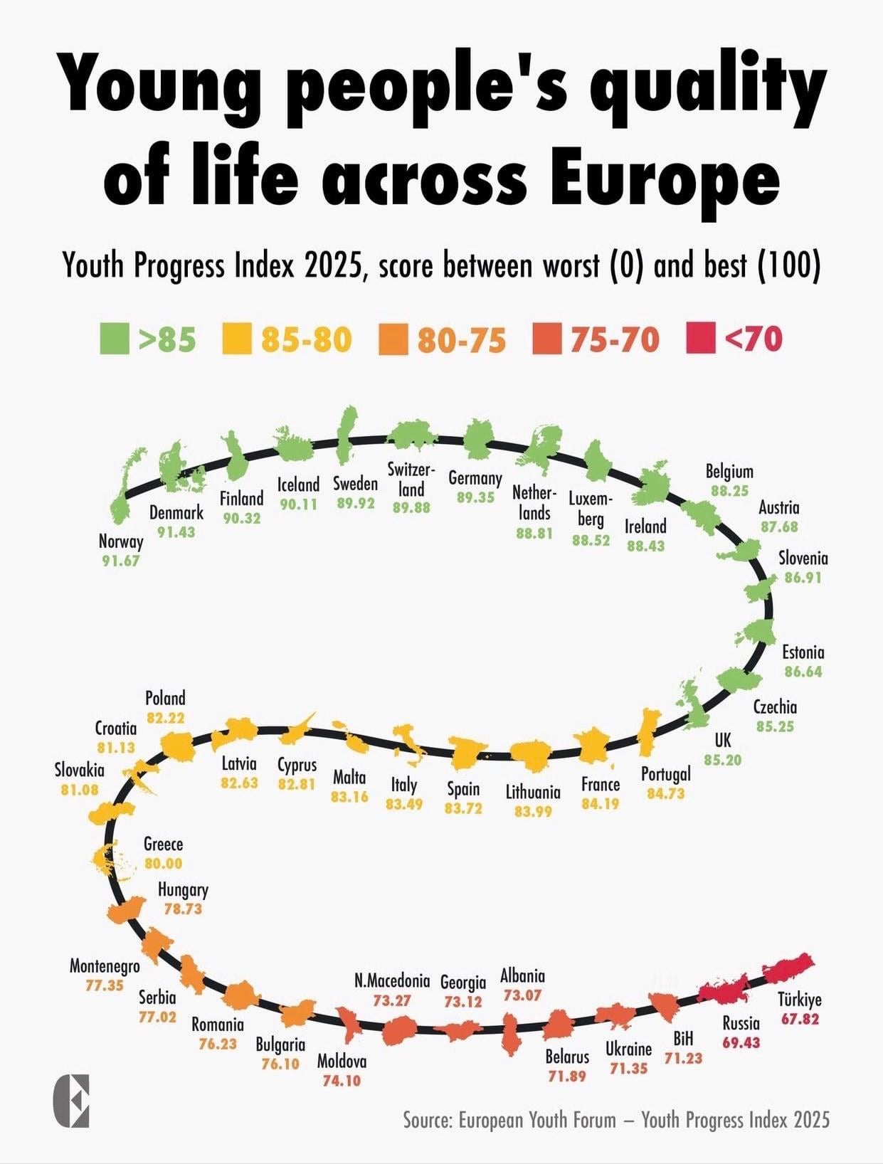 ヨーロッパ全体の若者の生活の質