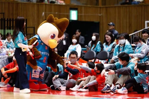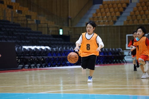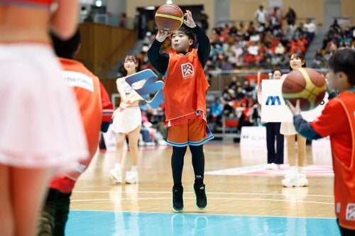 試合後には、小学生を対象にプロ選手が試合をするコートを使用した「広島ドラゴンフライズ ミニスクールカップ」を開催しました。