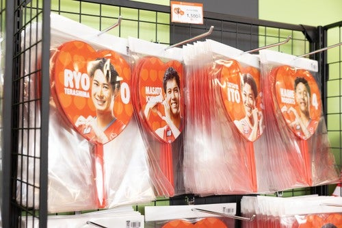 今節では、選手のハートポーズが可愛いチョコクランチ缶や写真映え間違いなしのハートうちわ、キラキラ輝くグリッターコースターなどバレンタイングッズを販売いたしました。