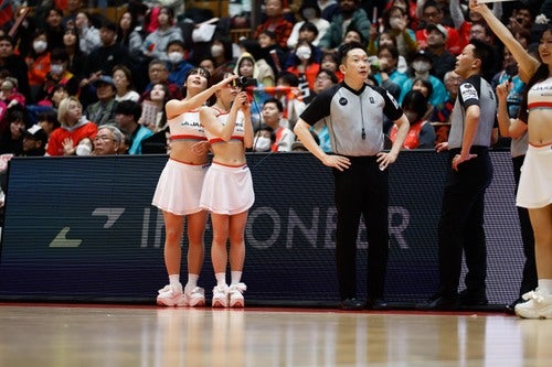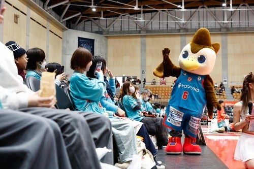 第2Qオフィシャルタイムアウトの、オタフクソース presents カメラルーレットでは、D*Flareのカメラにアピールし、最後に4面ビジョンへ映し出された方に選手サイン入りのれんタオルとオタフク商品詰め合わせがプレゼントされました。