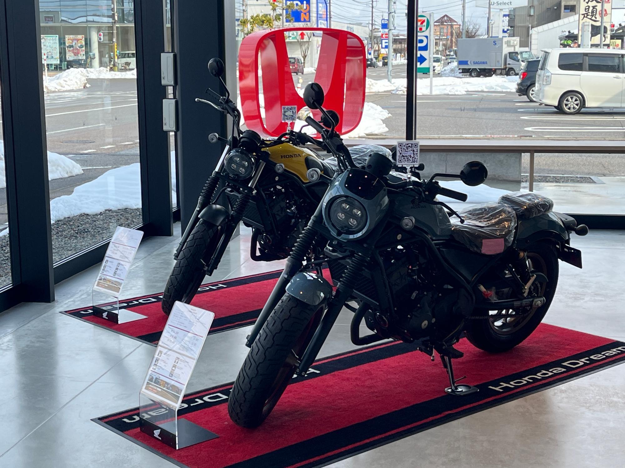 また、新店舗ではHondaのバイク展示も行われており、こちらは全国でも数店舗しか取り扱いのない希少な展示とのことです。予約を行えば富山市からバイク専門の担当者が来てくれてより深く展示のバイクについて知ることもできるという。クルマとバイクを同時に見られる空間は、Hondaファン、クルマファンにとっても注目ポイントとなりそうです。
