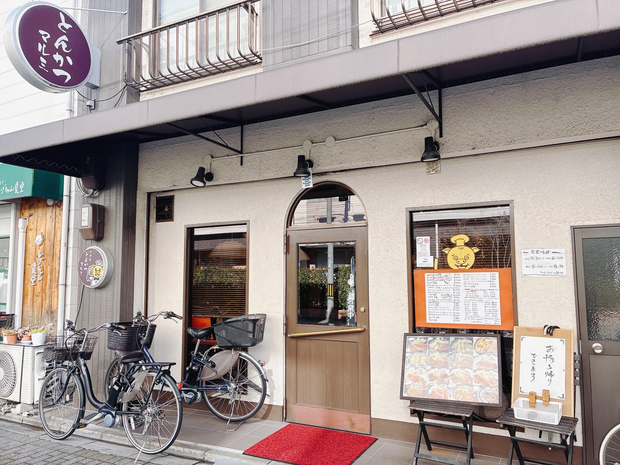 白い壁にアーチ型の入り口が可愛らしいお店です。目印は店先に掲げられた丸い看板。コック帽をかぶった豚さんのイラストがなんとも愛らしく、思わずほっこりしてしまいます。創業から50年以上続く老舗で、お昼時には地元の方で賑わう人気店です。