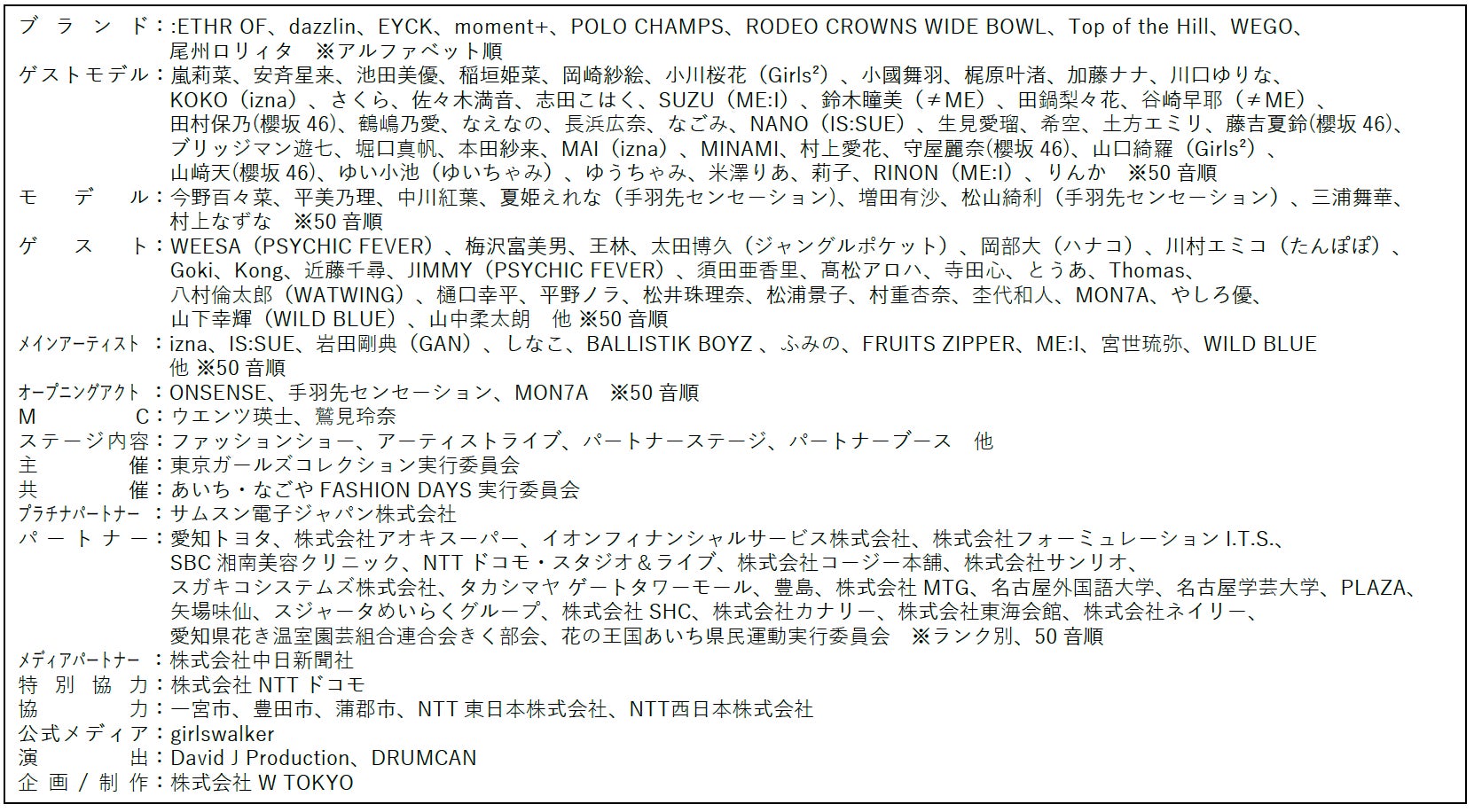 by TOKYO GIRLS COLLECTION 開催概要