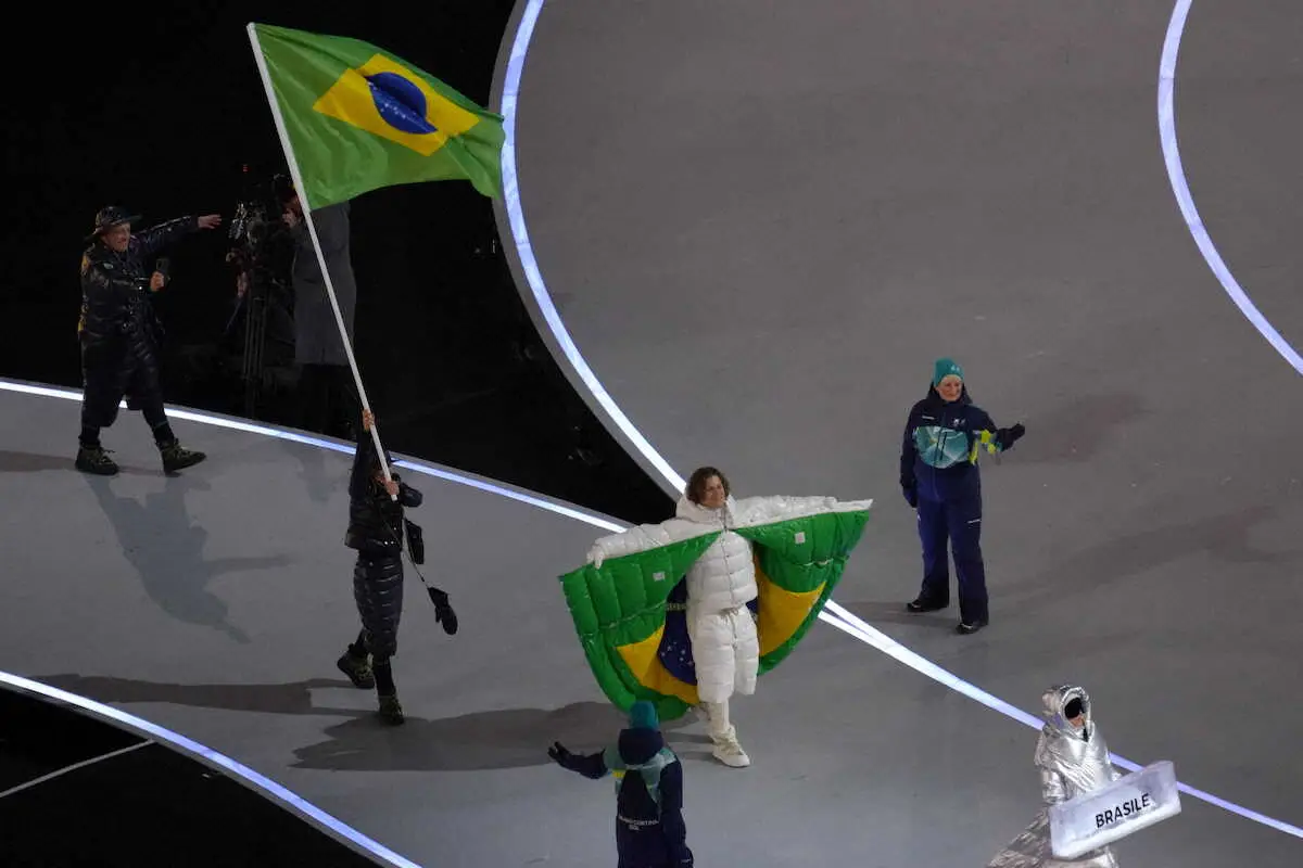 <ミラノ・コルティナ五輪 開会式>行進するブラジルの選手