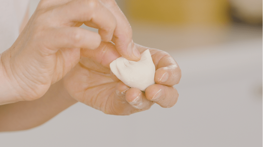 手作りの皮はよく伸び、形を自由自在に変化させることができます。巾着のように無駄なく、皮が具材に寄り添ってくれます。ちょっとくらい具材がはみ出しても、破れてしまっても、ちょいと指で摘めば、具材も失敗も優しく包み込んでくれます。