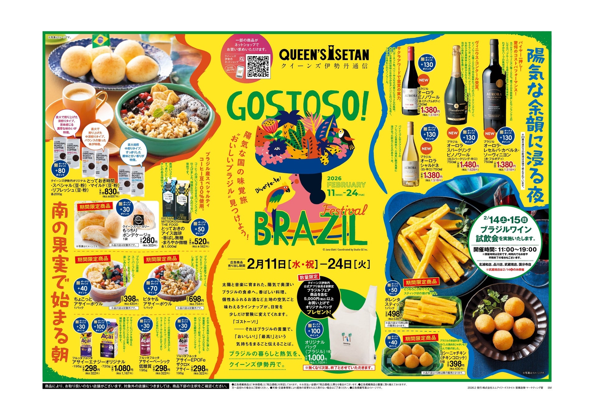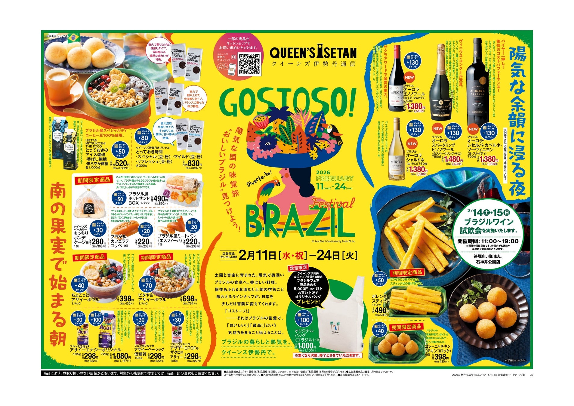 三越伊勢丹のグループ会社で、首都圏を中心に22店舗のスーパーマーケット(クイーンズ伊勢丹)を運営する株式会社エムアイフードスタイル(本社:東京都新宿区、代表取締役社長:雨宮 隆一)は、2月11日(水・祝)~2月24日(火)の期間限定で、「GOSTOSO!BRAZIL Festival」を開催いたします。