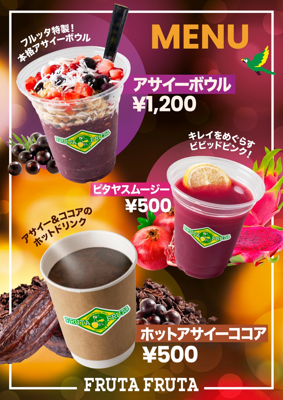 さらに、武蔵境店限定で13日(金)・14日(土)・15日(日)の3日間、ブラジルフェアを盛り上げるキッチンカーが登場。朝食の定番アサイーボウルに加え、アサイーのコクとココアの甘さが絶妙にマッチしたからだ温まるアサイーココア、さっぱりとした甘さが特徴のピタヤスムージーをご用意しております。