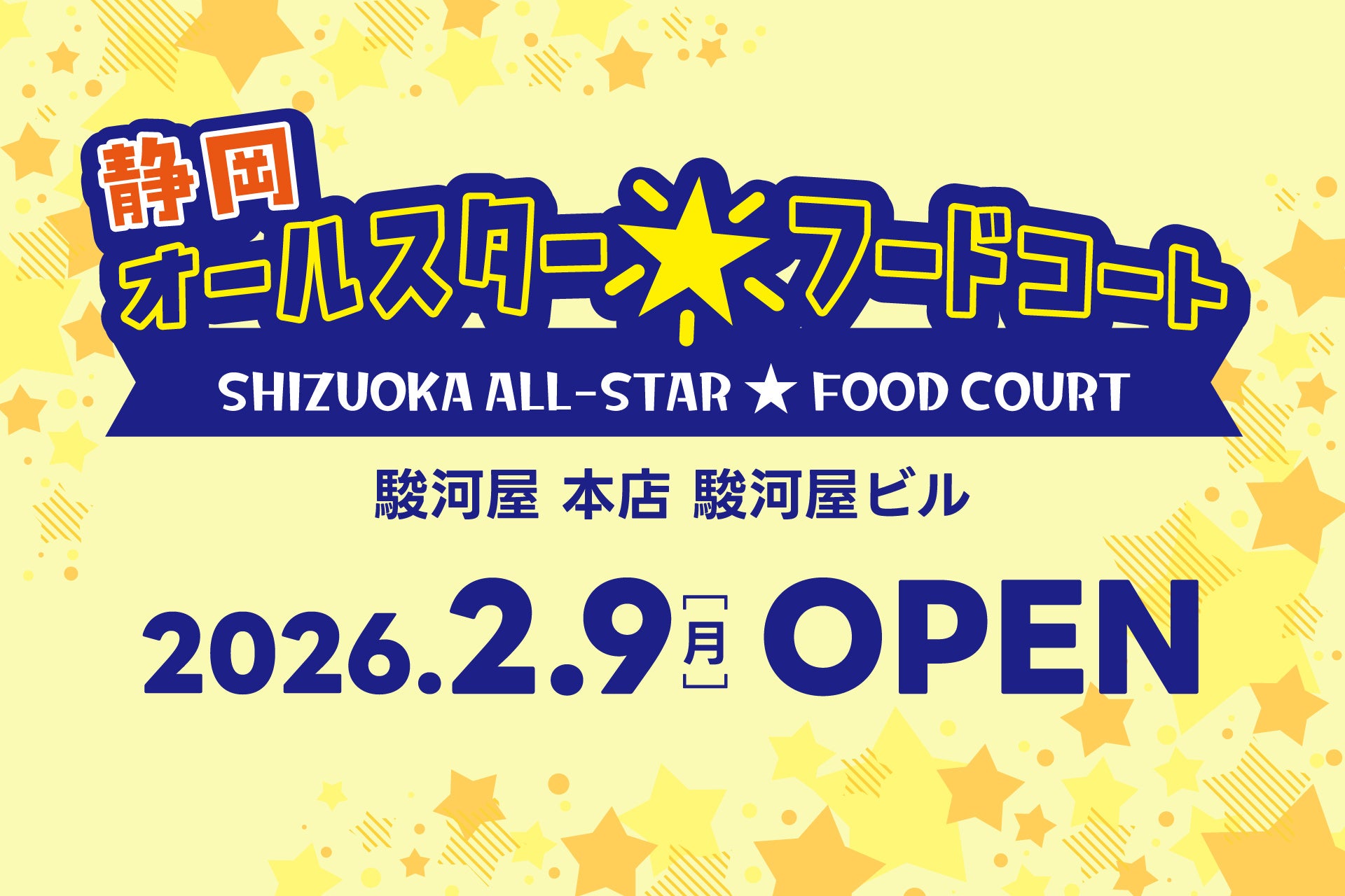 株式会社 駿河屋(本社:静岡県静岡市葵区、代表取締役:杉山 綱重)は、2026年2月9日、駿河屋 本店 駿河屋ビル(静岡県静岡市葵区)内に、静岡を代表する飲食店が集結するグルメスポット「静岡オールスターフードコート」 をオープンいたしました。