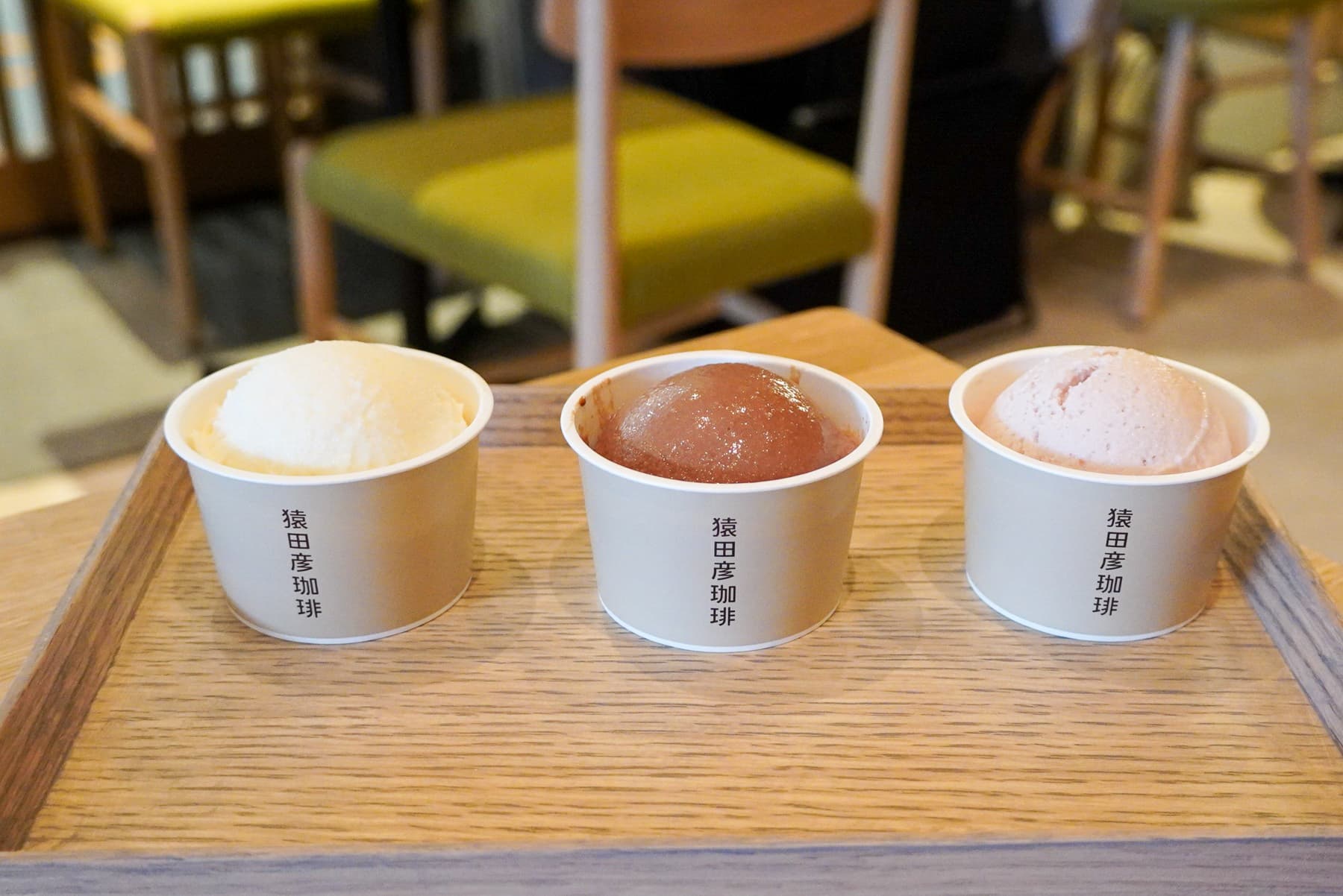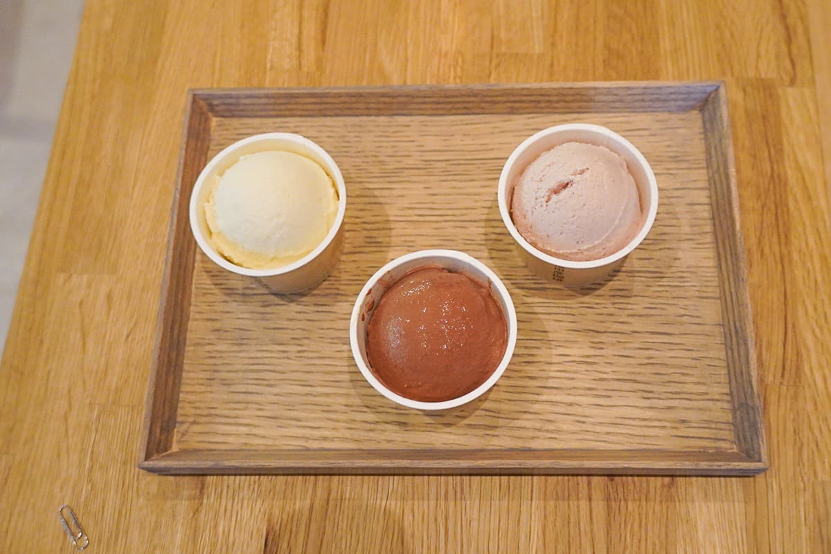左から「和三盆みるく」「山椒とチョコレート」「ニッキと木苺」(イートイン各550円)