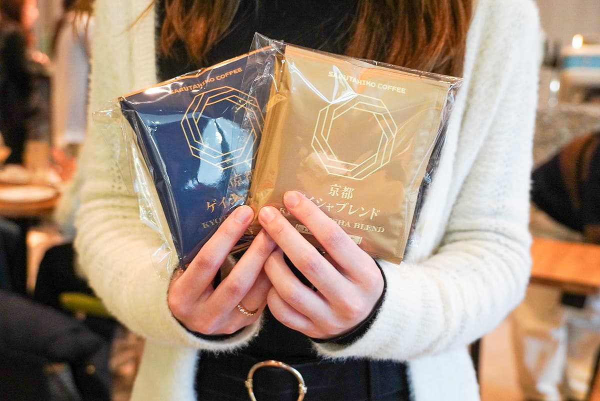 繊細で華やかな香りと、複雑かつまろやかな味わいが特長です。「京都ゲイシャブレンドドリップバッグ」は、浅煎りと深煎りの2種類が用意されています。