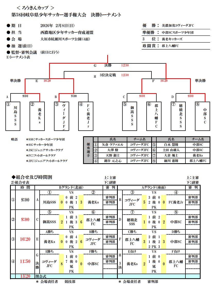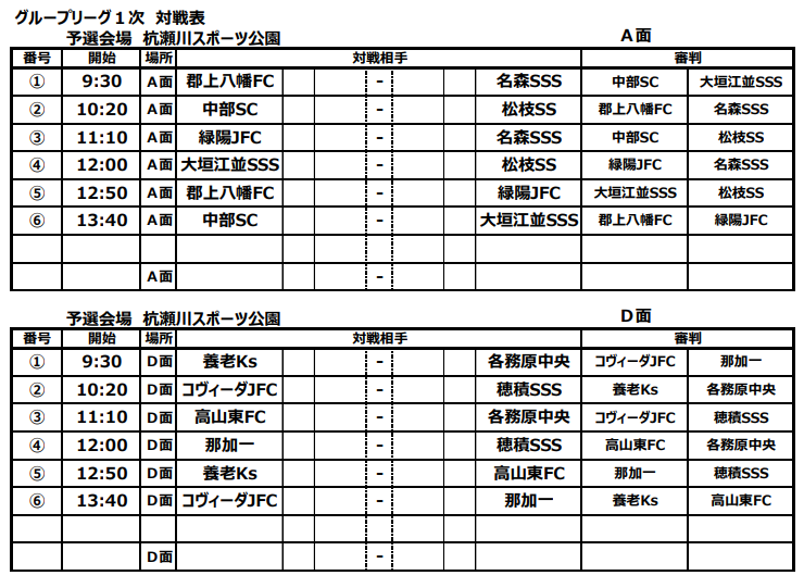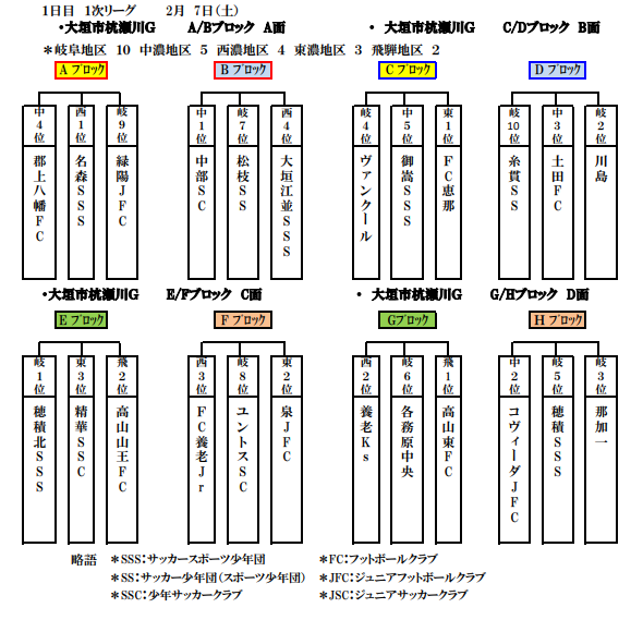 1位:郡上八幡FC(中濃4位)、名森SSS(西濃1位)、緑陽JFC(岐阜9位)
