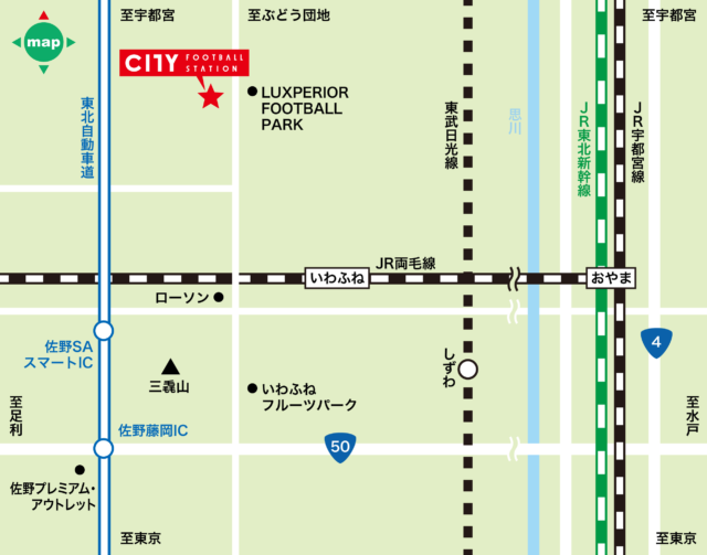 CITY FOOTBALL STATIONと栃木駅、岩舟駅を繋ぐ「ふれあいバス」が隣接する CITY GYM & SPA-遊楽々館- にてご利用いただけます。