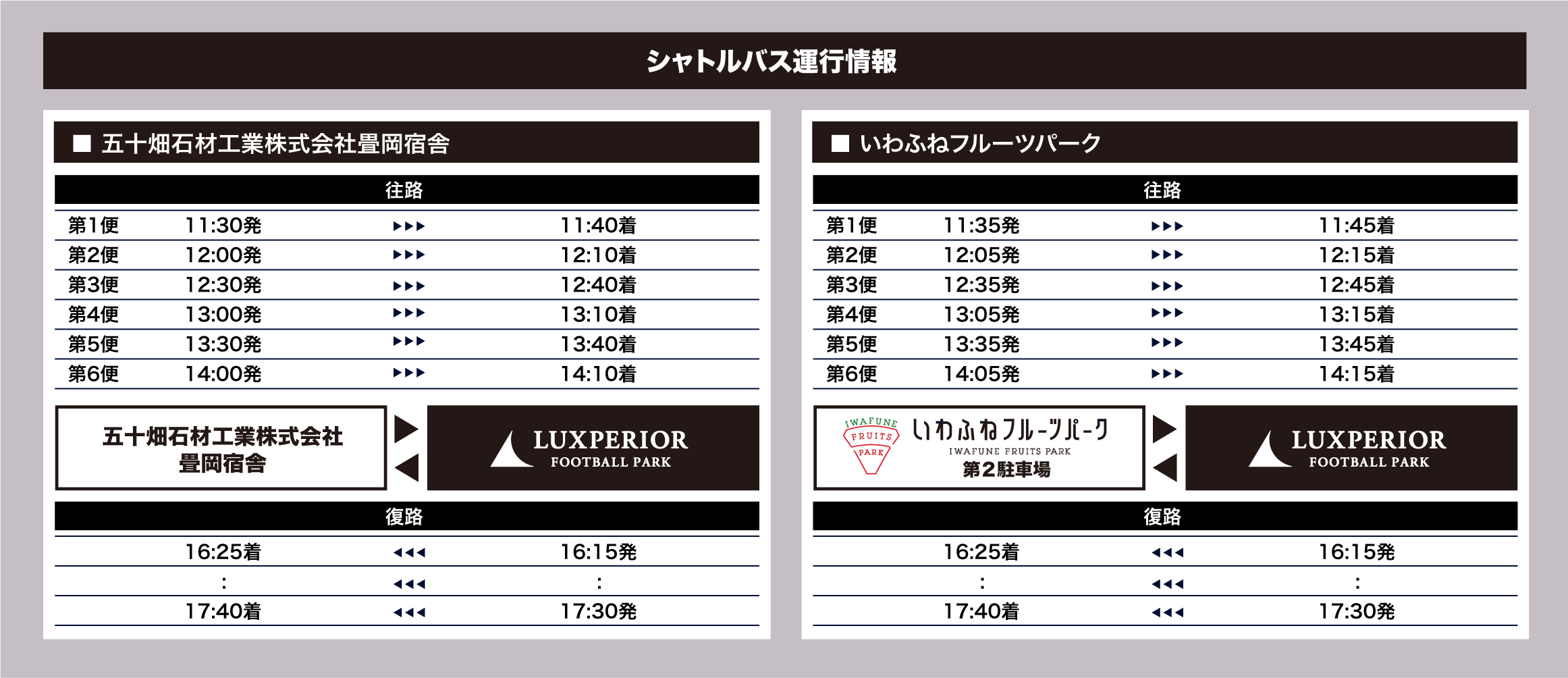 臨時駐車場からスタジアムを結ぶ無料シャトルバスを運行いたします。