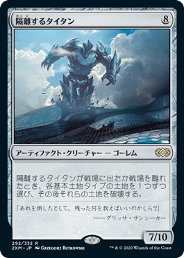 それから統率者戦も長い道のりを歩んできており、そういう盤面になることがぐっと少なくなっている。土地否定は手放しに楽しめるものじゃないけれど、トライオームや各種2色土地が持て囃され、強化を続けているマナベースに釘を刺すときが来ているのかもしれない。