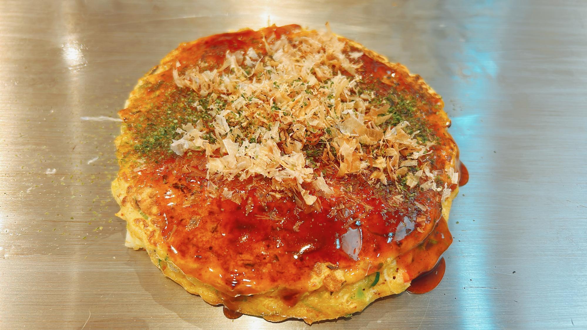 お好み焼きは自分で焼くことも、焼いてもらうこともできます。