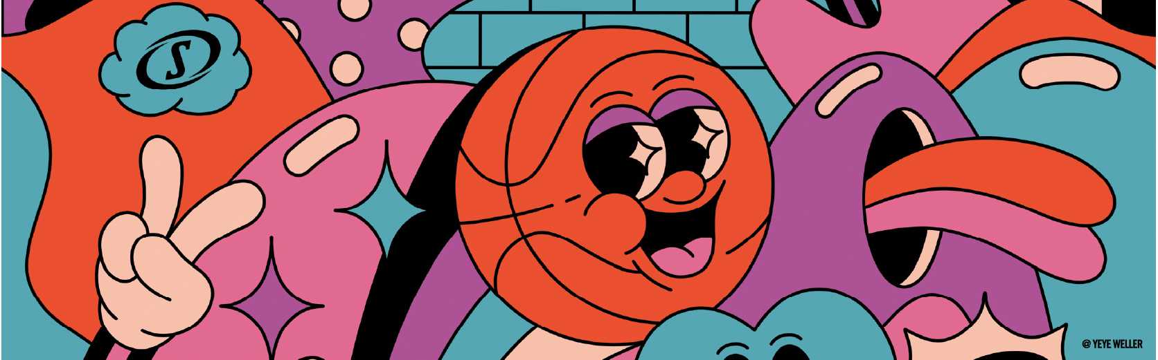 バスケットボールやミニゴール、バッグ、アパレルなど、幅広いラインナップで展開する今回のコラボレーションシリーズ。オンコートはもちろん、オフコートやデイリーライフにもポップでカラフルな彩りを添えます。YEYE WELLERならではのポジティブな世界観を、ぜひ体感してください。