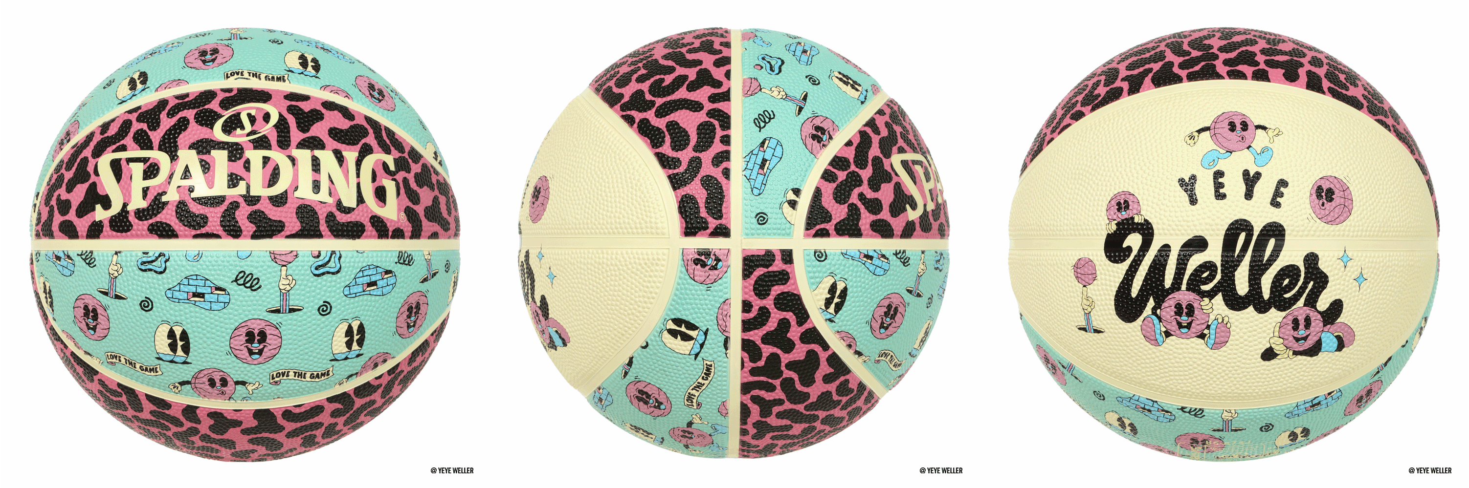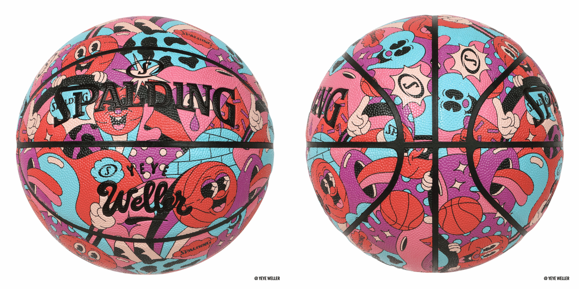 「世界をもっとカラフルでハッピーに!」という思いを込めて、デジタルからアナログまで多彩なスタイルで作品を生み出すYEYE WELLER。今回のコラボレーションでは、スポルディングのために描きおろされたオリジナルグラフィックによる特別なプロダクトがボール、バッグ、アパレルと幅広くラインナップ。
