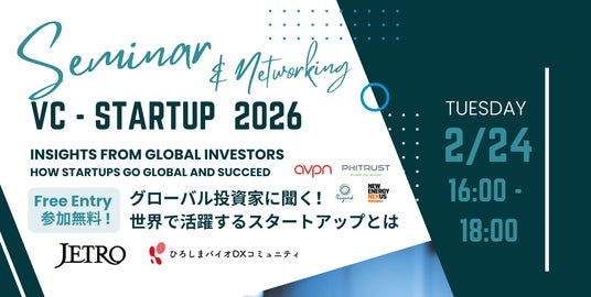 日本の技術や研究が海外から再注目される今だからこそ、どうすれば海外を目指せるスタートアップになれるか、どうすればグローバルなエコシステムを構築できるか、欧州・アジアで活躍する海外投資家4名を招き、議論します。広島大学発スタートアップのプラチナバイオ社も登壇します!