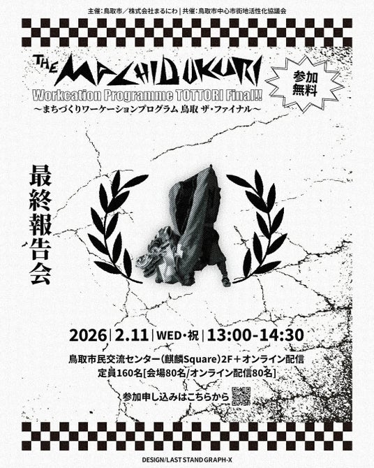 “行動で世の中を変えていく“を理念に掲げる株式会社Dooox(東京都品川区、代表取締役 久保寺亮介/以下「当社」)の営業統括室 室長 浅香豪が、鳥取市(市長:深澤義彦)と株式会社まるにわ(本社:鳥取県鳥取市、代表取締役:齋藤浩文)が主催する「まちづくりワーケーションプログラム@鳥取 the FINAL 最終報告会」(2026年2月11日開催)にコメンテーター(アドバイザー)として参加することをお知らせいたします。本プログラムは、鳥取市中心市街地を舞台に、地元人材と都市部人材が協働して遊休不動産活用プランを立案する官民連携の取り組みで、今回で5回目の開催となります。