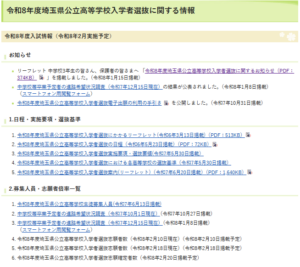 令和8年度埼玉県公立高等学校入学者選抜に関する情報