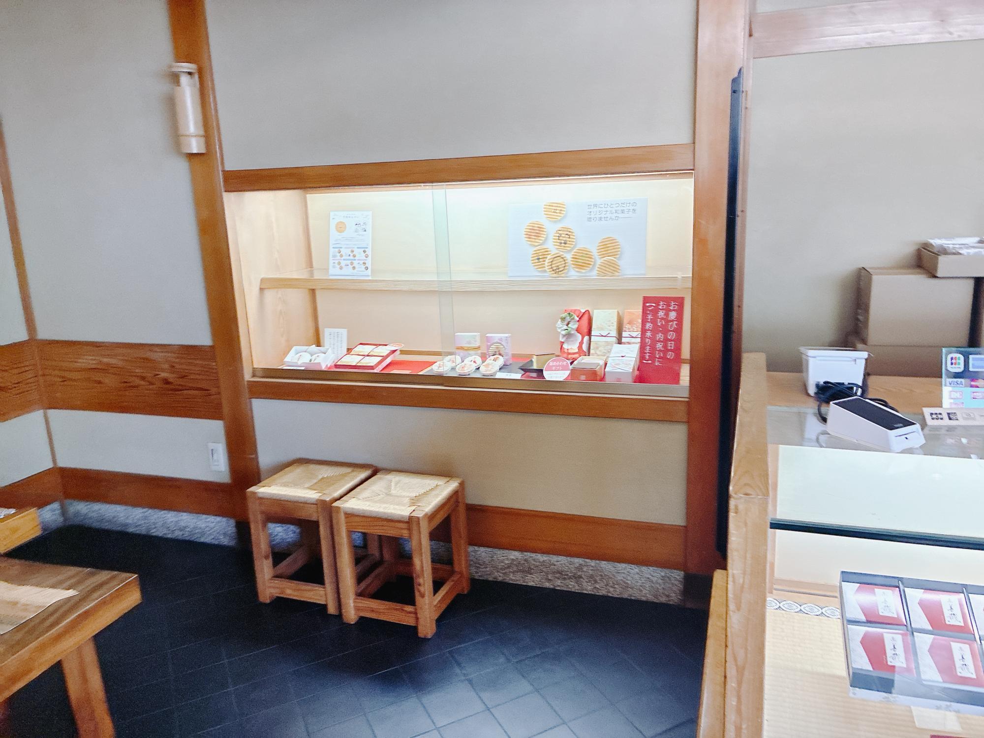 店内には休憩スペースも設けられており、購入したお菓子をその場でいただくことも可能です。散策の合間にほっと一息つけるのが嬉しいですね。