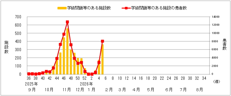 2026年第5週に学級閉鎖等5のあった保育所・学校等は360施設、患者数は8,035名でした。